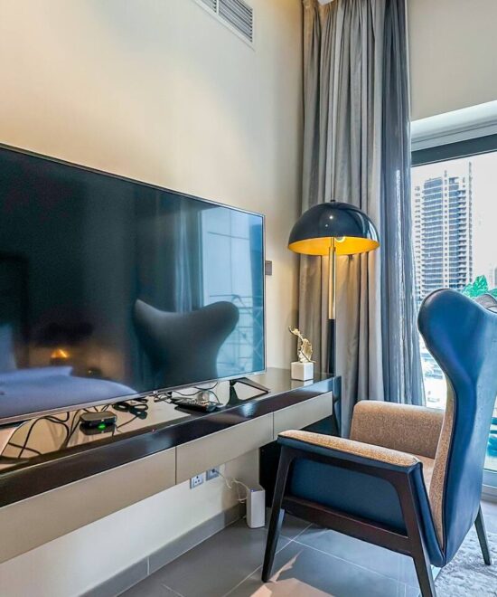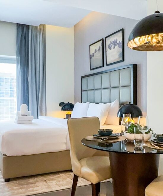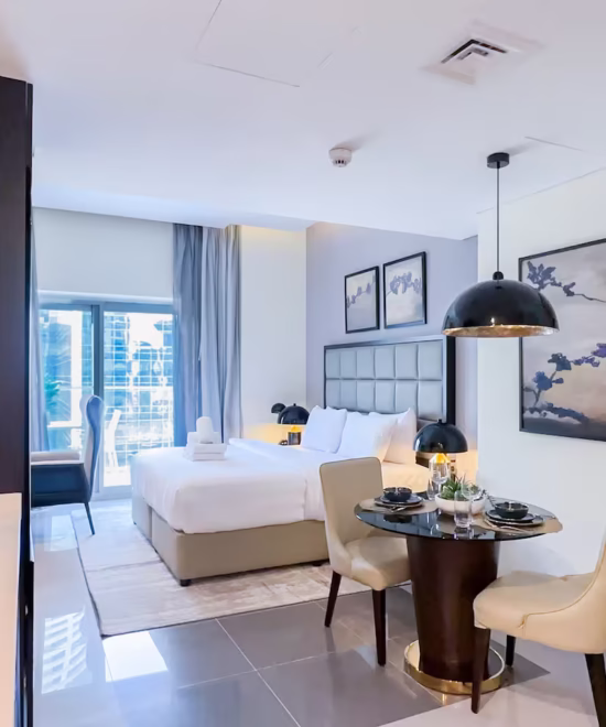 Experience refined city living in this elegant studio apartment located in the 5-star Damac Majestine Tower, one of Business Bay’s most prestigious residential addresses. Designed for comfort and convenience, this fully furnished unit is perfect for solo travelers, business professionals, or couples seeking a stylish retreat near Downtown Dubai.