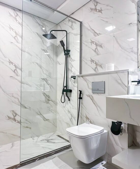 Modern bathroom with walk-in shower