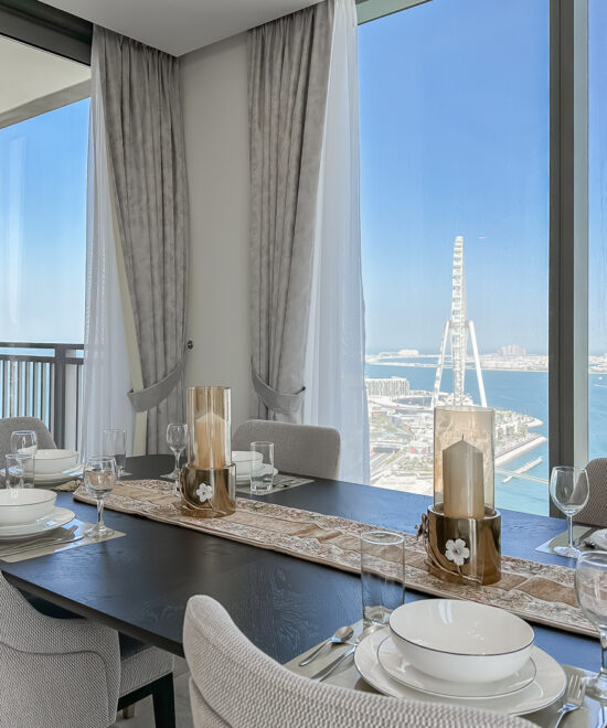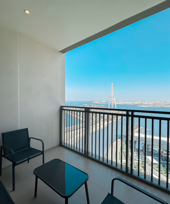 Wake up to endless blue horizons in this stunning 3-bedroom apartment in the iconic 5242 Towers, located in the heart of Dubai Marina. With floor-to-ceiling windows, every corner of this stylish home is designed to maximize the breath-taking panoramic sea views across the Arabian Gulf, Bluewaters Island, and Ain Dubai.